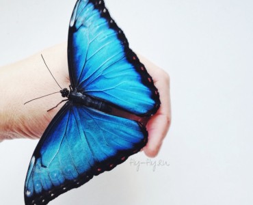 Очень яркая бабочка голубого цвета. Размах крыльев до 5 см